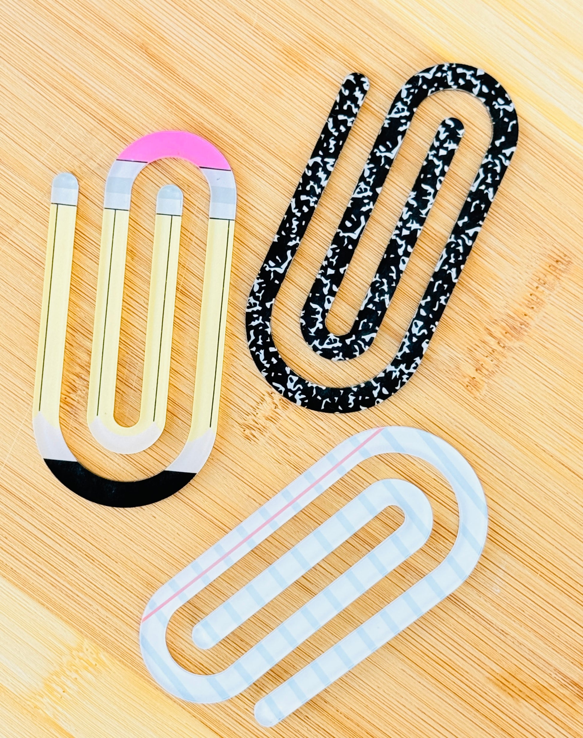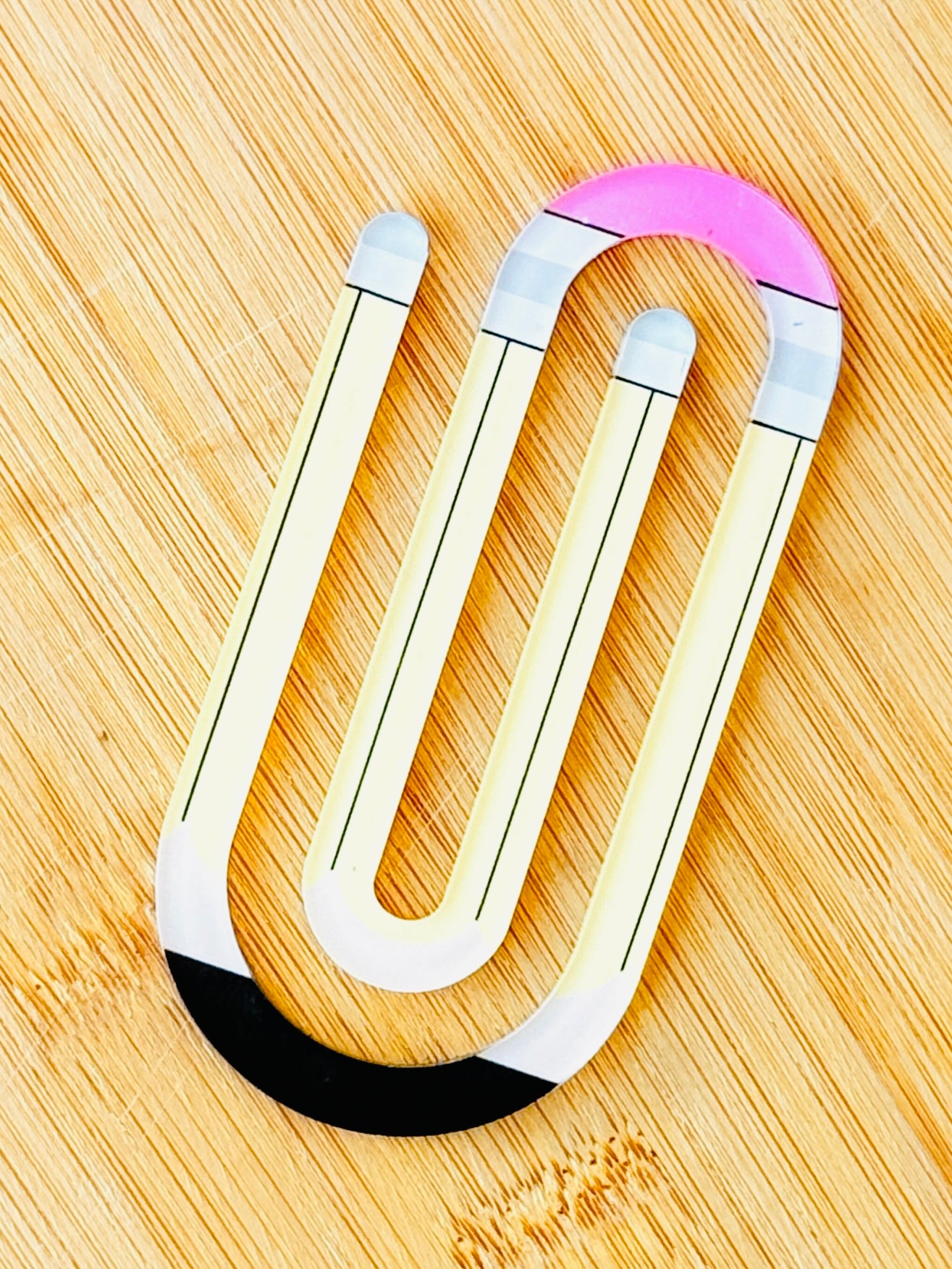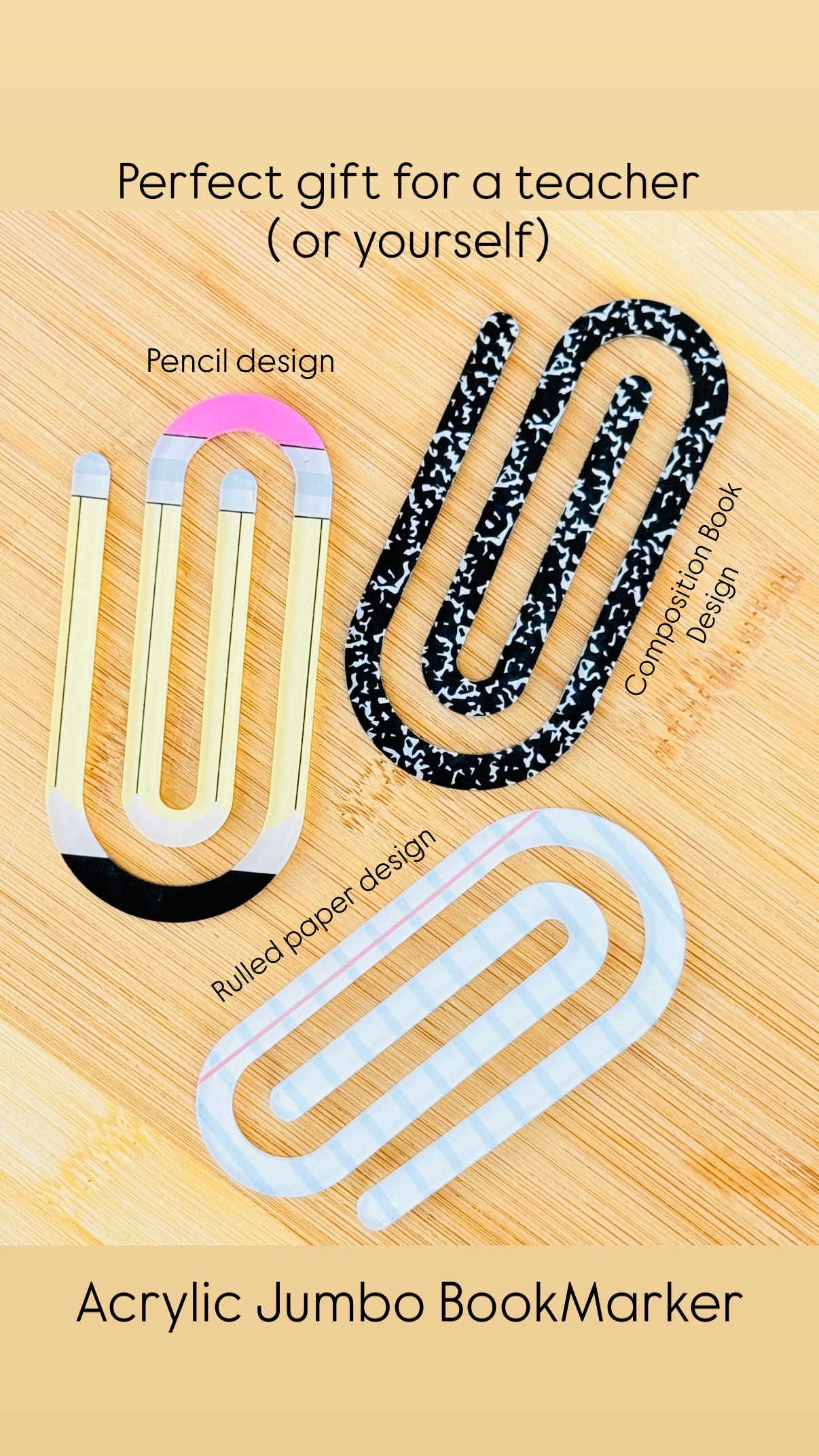Acrylic Jumbo Paper Clip Bookmarks- Pencil, Composition Book & Ruled Paper Designs